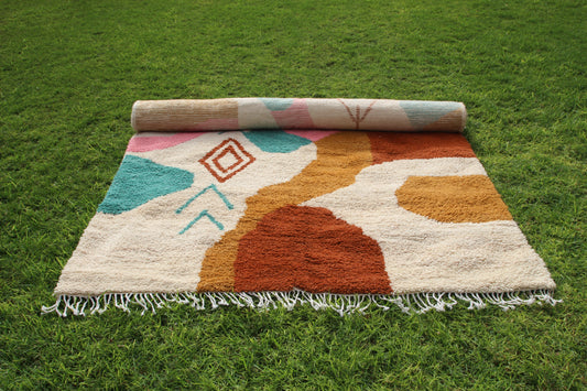 Within the Paths of Aït Bouguemaz, each rug becomes a fragment of the valley: ancestral memory transposed into a piece of slow design, both timeless and boldly modern.